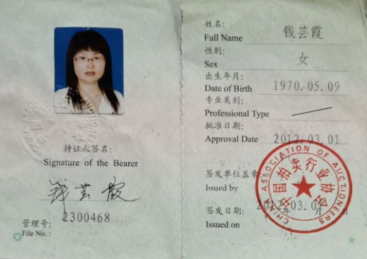 2012年獲得國(guó)家注冊(cè)拍賣師